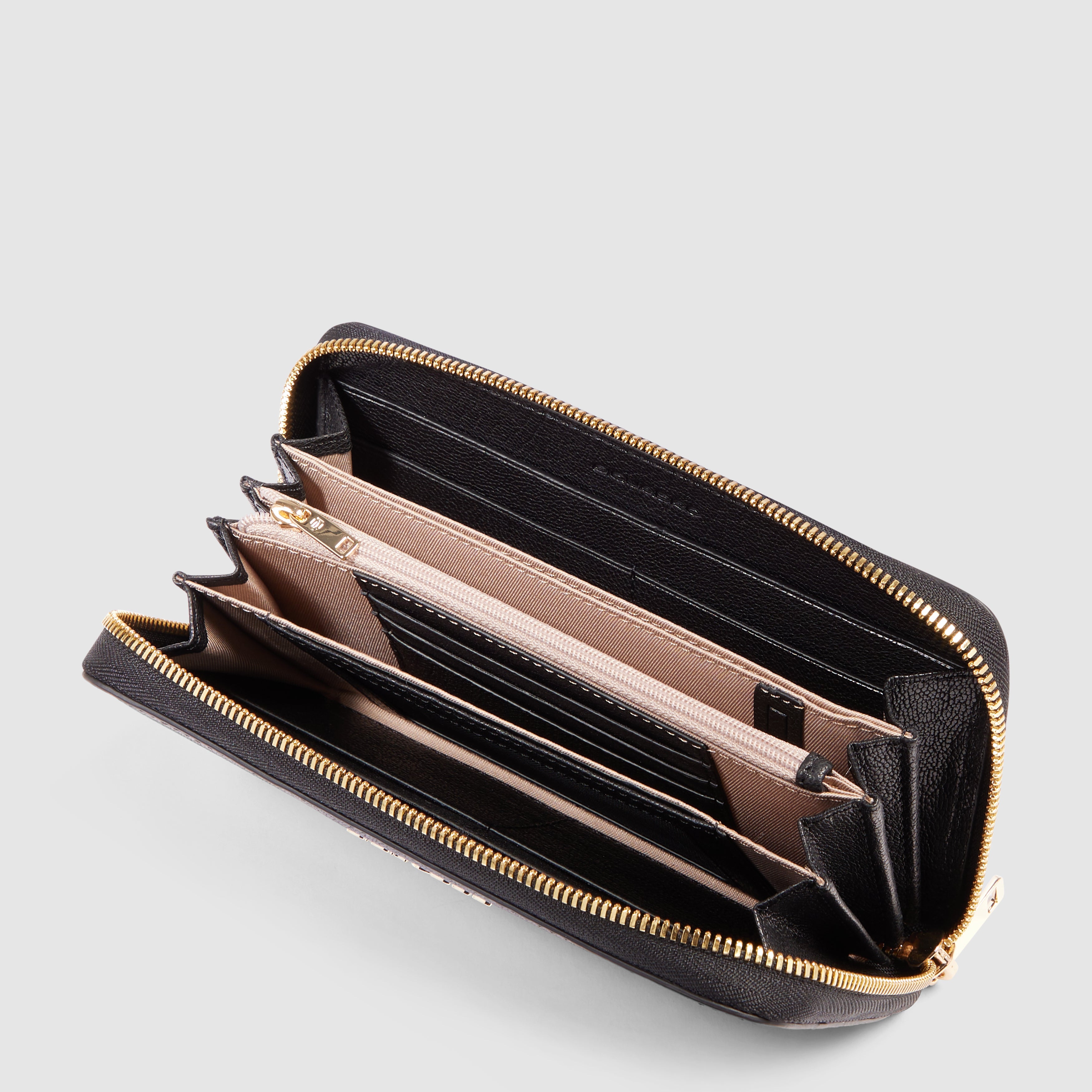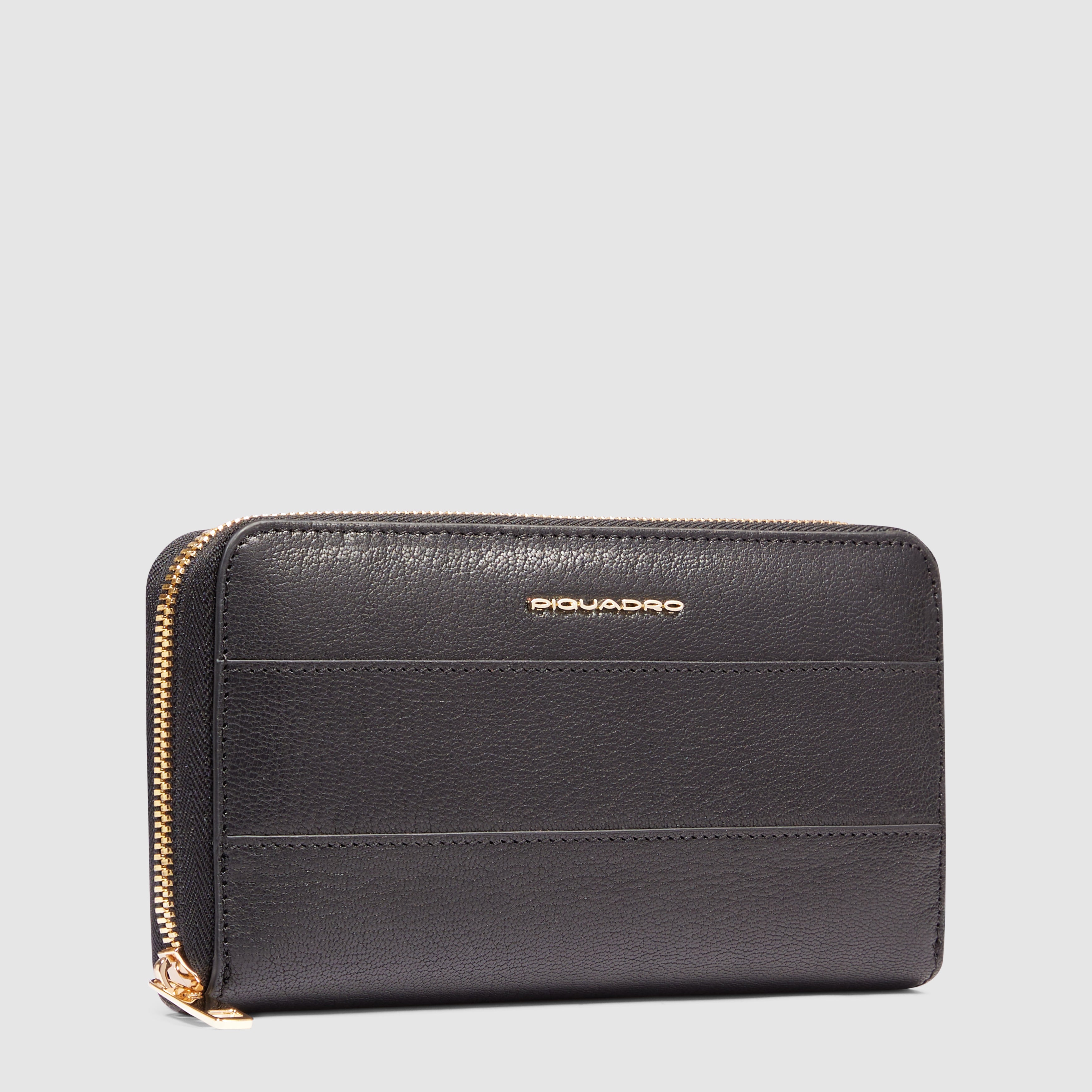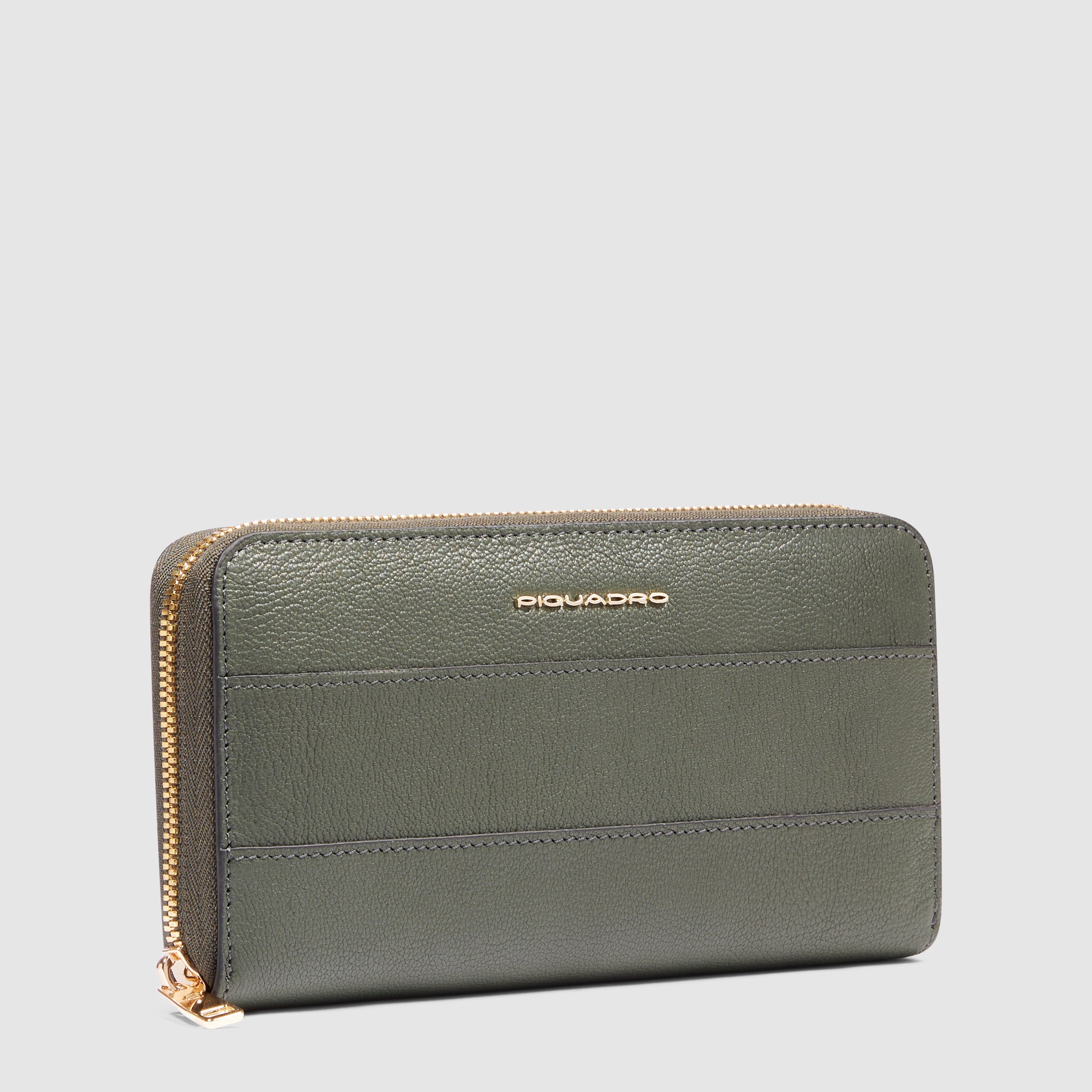 Veliki ženski novčanik od kože sa patentnim zatvaračem, četiri pregrade, džepom za novčiće, utorima za kreditne kartice i RFID zaštitom. 19.0 x 10.5 x 3.0 (cm)